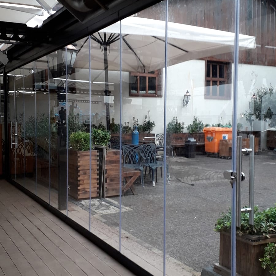 The glasses used are tempered on both sides 4 + 12 + 4 mm.